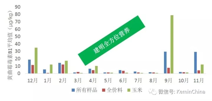 从历史数据来看,11月份黄曲霉毒素B1污染程度较上月有所加重。